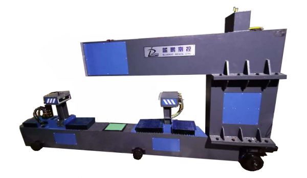 該設備共設置2只二維激光測量傳感器和2只激光位移傳感器。二維傳感器設置在兩側,可根據(jù)板材厚度調整傳感器之間的間距,間距調整由伺服電機驅動滑臺模組實現(xiàn),調整完成后不需校準即可實現(xiàn)高精度測量。位移傳感器固定設置在被測板材的上、下方,測量板材中間點的厚度。